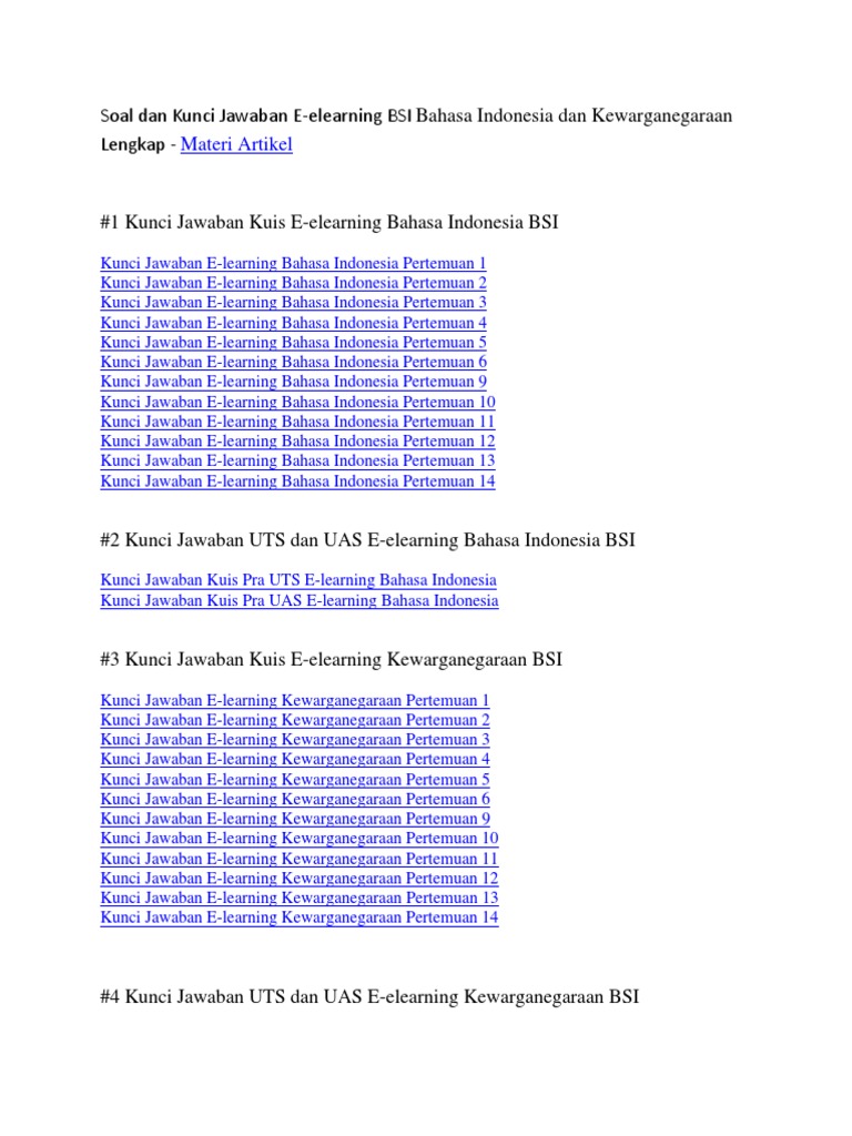 Pilihlah kunci jawaban yang tepat dan menurut kalian paling benar. Soal ini update 2019 loh dengan jumlah soal 50. Soal uas pkn bsi semester 5 1. Soal dan jawaban uts bahasa indonesia bsi. Berikut dibawah ini adalah kunci jawaban e learning pkn kewarganegaraan bsi pertemuan ke 5.